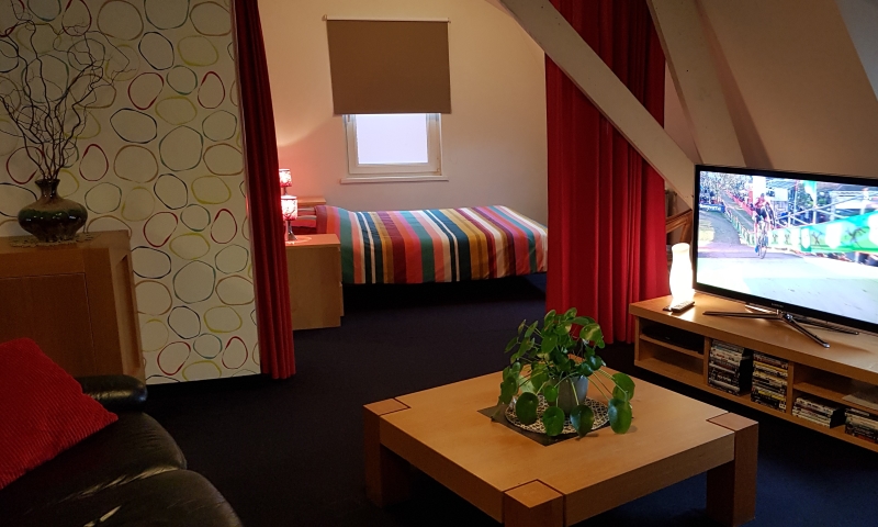 De loft beschikt over een ruime zitplaats met een grote flatscreen tv, een uitgeruste keuken met vaatwasser. Max. 6 personen.